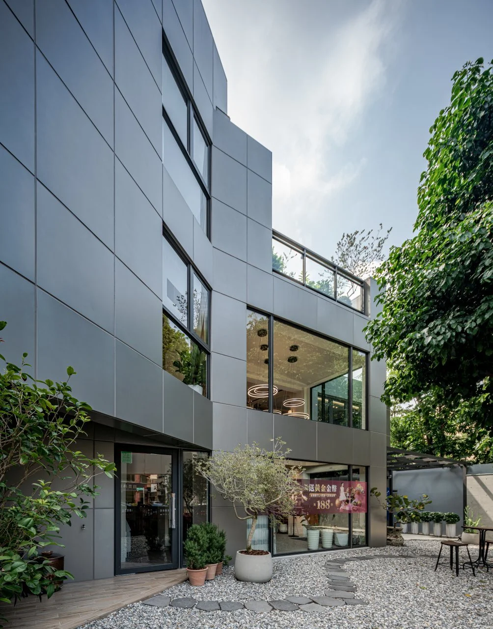 A crucial aspect of this transformation is the preservation of a longstanding tree on the property, symbolizing continuity and growth alongside the new flagship store in Zhubei.